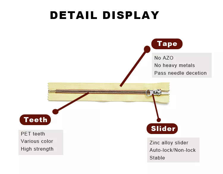 Jokainen nailonpäällysteinen vetoketju on valmistettu huolellisesti valituista, ensiluokkaisista raaka-aineista, mikä varmistaa poikkeuksellisen suorituskyvyn ja kestävyyden. Käytämme maahantuotua erittäin lujaa nylonmonofilamenttia ja kovaa polyesterivetoketjuteippiä varmistaaksemme, että vetoketju pysyy sileänä, turvallisena ja joustavana myös toistuvassa käytössä.