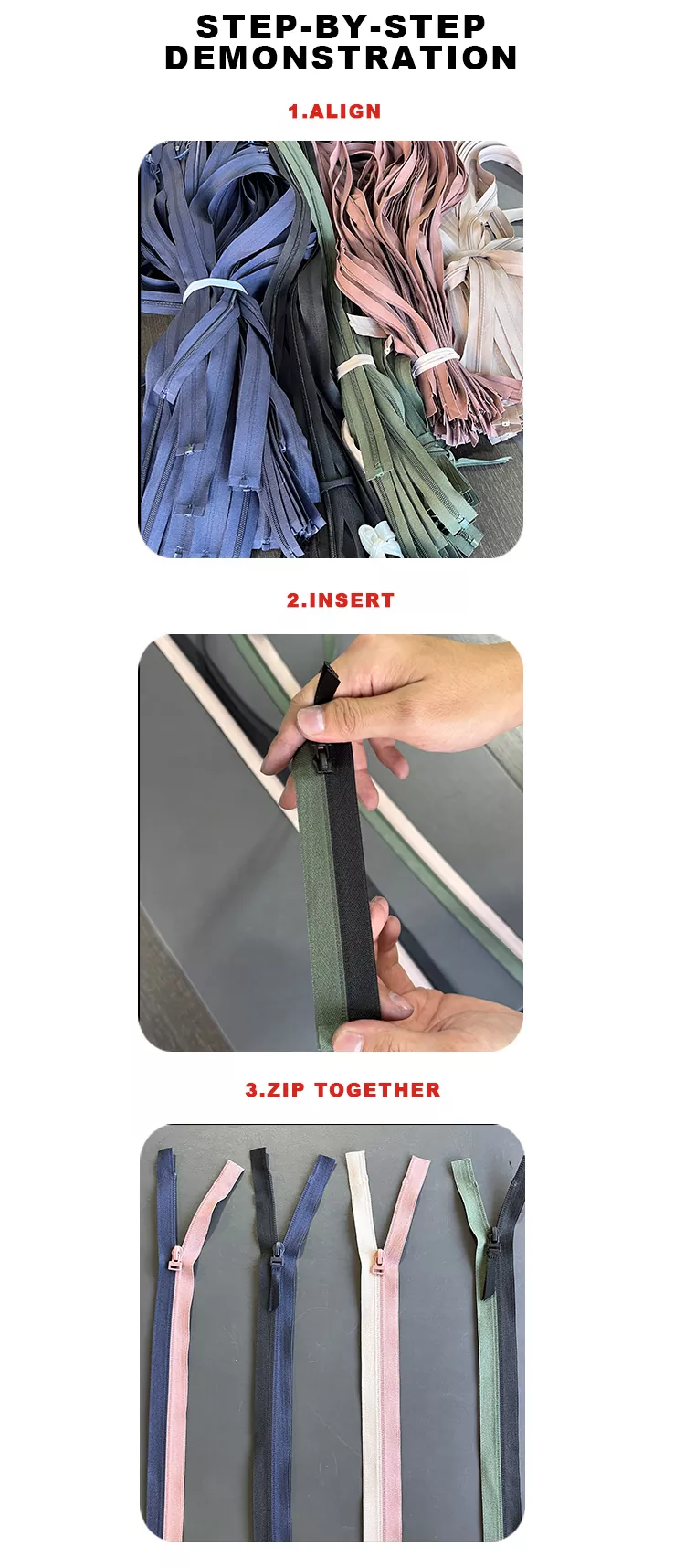 3. Kaikki vetoketjumme voidaan yhdistää saumattomasti väristä, pituudesta tai tuotantoerästä riippumatta.